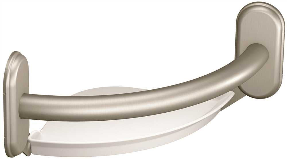 | Brushed nickel finish | Grab bar with corner shelf | The securemount design allows for secure installation into any stud at any angle | Supports up to 250 lbs. 9 inch bar length | 1.0 inch bar diameter | Corrosion resistant | Stainless steel construction