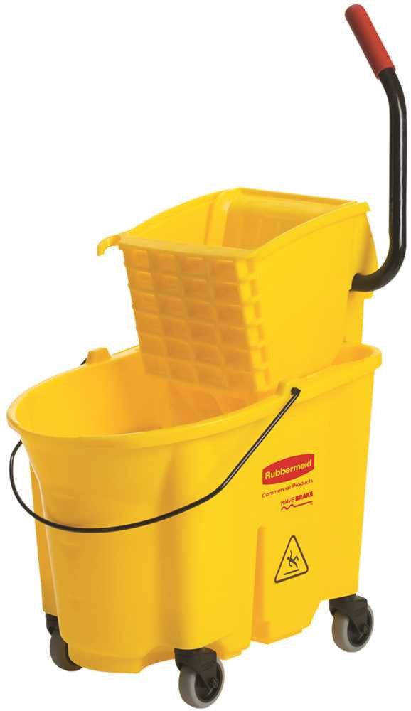 The WaveBrake mop bucket and wringer system reduces splashing, which means a safer environment, cleaner floors, and improved productivity. High efficiency side press wringer. Tested to exceed 50,000 wringing cycles, average wringers perform approximately 860 cycles. Premium tubular steel and structural web molded plastic.